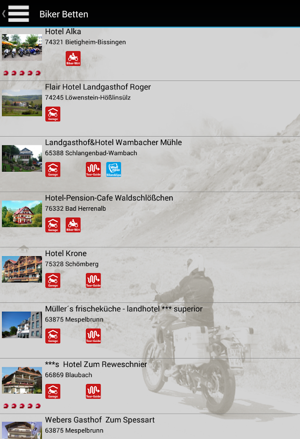 Biker betten schwarzwald — bike test & vergleich: die besten produkte aus 2021 from jedem-verheiratet.net Download & install biker betten 3.0.3 app apk on android phones. 5 november at 04:50 ·. Sie erstrecken sich auf deutschland. Wer motorradfahren liebt, liebt bikerbetten.de! Find latest and old versions. Die schönsten touren europas, und motorradfreundliche biker. For biker betten , you can put it in the search bar and get started. Generally most of the top apps on android store have rating of 4+.